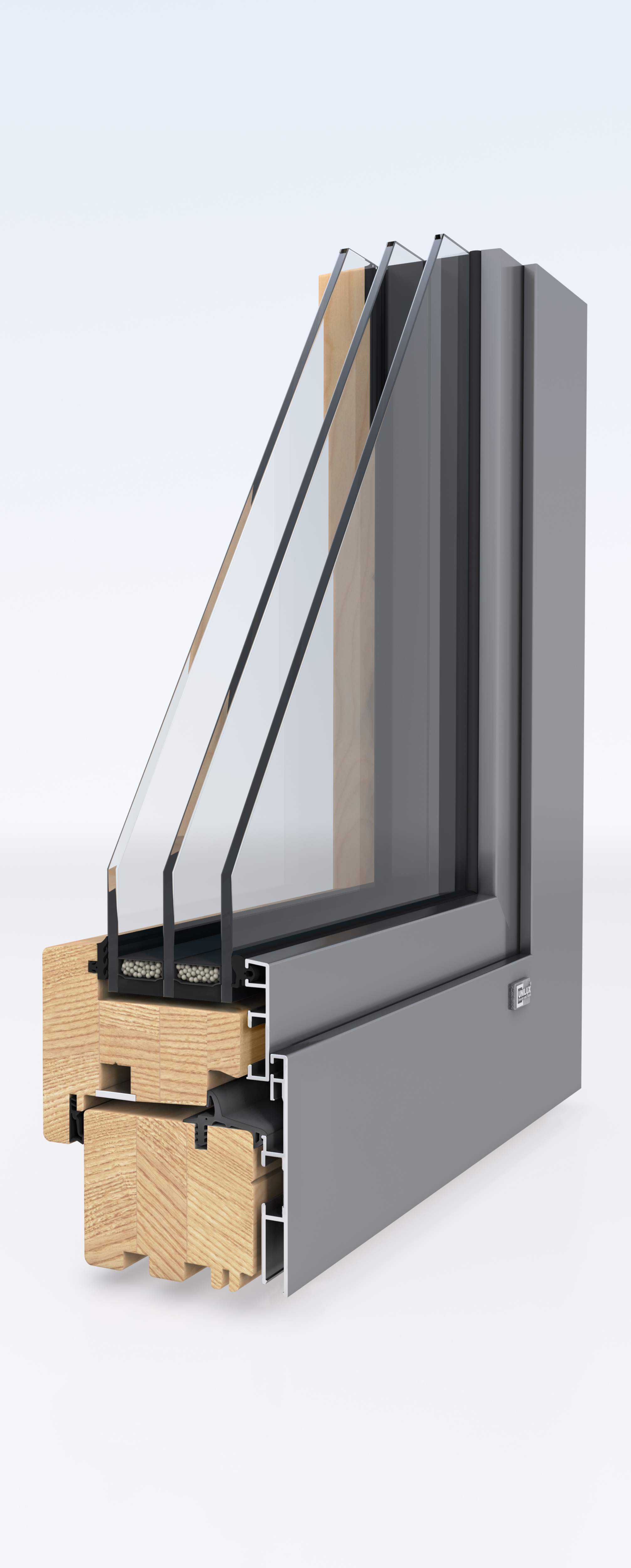 Mit einer Bautiefe von 76 mm vereint IsoPlus visuelle Finesse und energetische Effizienz durch eine durchdachte Kammerkonstruktion, die Schall- und Wärmedämmung maximiert. -